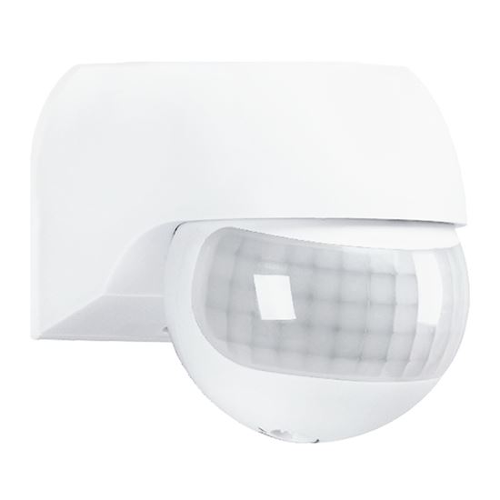 PIR - Pohybové čidlo nástěnné pro spínání osvětlení, možnost náklonu, plast černý/bílý, záběr 180°, dosah max 12m, čas 10s-7minut, zátěž max 800W/300W IP44, 230V.