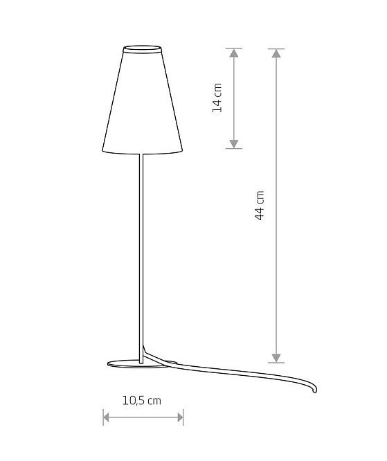 Stolní lampa, základna kov, povrch bílá, černá nebo šedá, stínítko textil, pro žárovku 1x10W, G9. 230V, IP20, tř.1, rozměry d=95mm, h=440mm, přívodní kabel l=1650mm, včetně vypínače na kabelu
