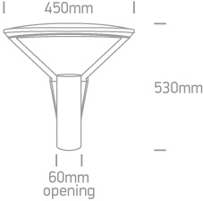 RORY 25W-40W-60W-75W - Veřejné parkové osvětlení, POUZE HLAVA, těleso hliník, povrch černá, nast. LED 25W-40W-60W-75W, přepín CCT teplá 2700K/3300K/neutr 4000K, Ra80, 230V, IP66, tř.1, rozměry hlavice d=450mm, h=530mm.
