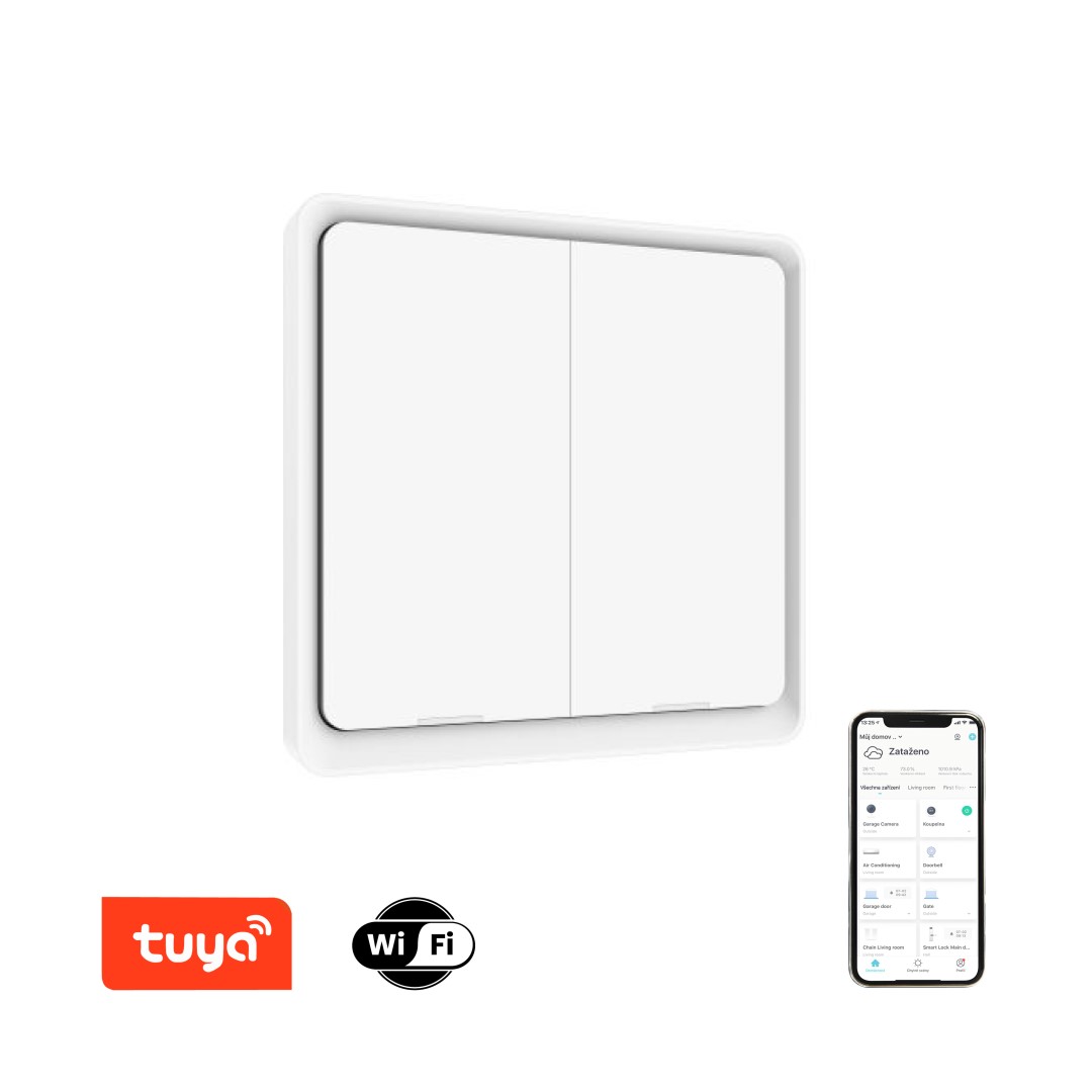SMART vypínač-2 WiFi - Dotykový vypínač 2-tlačítkový WiFi, kompatibilní smart systém Tuya, 230V, IP20, plast bílá, rozměry 86x86x37,5mm