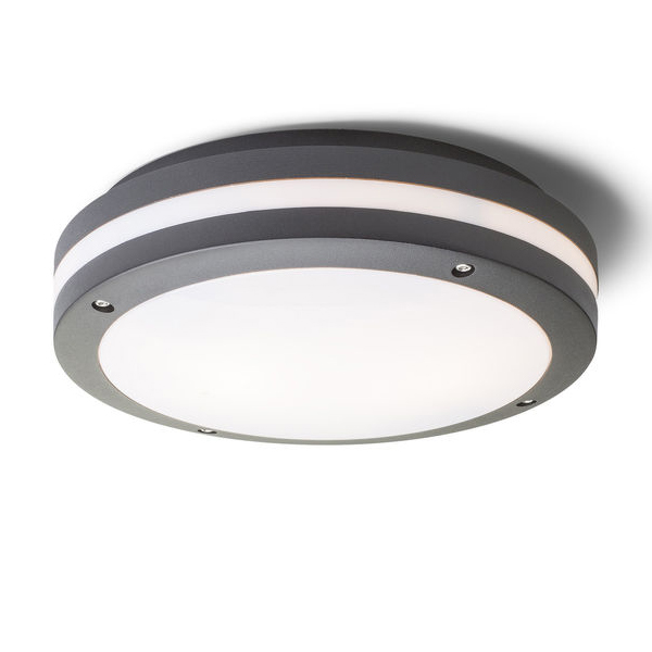 Stropní svítidlo, těleso hliník, povrch šedostříbrná, nebo černá, difuzor plast opál mat, pro úspornou žárovku 2x18W, E27, 230V, IP54, tř.1, d=300mm, h=100mm