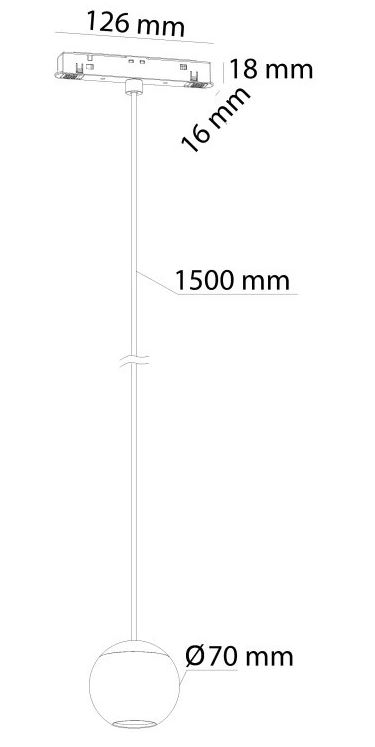 Rozměry d=70mm, vč závěs kabelu l=1500mm, lze zkr. Uváděné rozměry jsou pouze informativní a výrobce je může změnit.