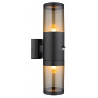 Nástěnné venkovní svítidlo, PIR senzor pohybu, záběr 110°, dosah 4-8m, těleso nerez, povrch černá mat, difuzor plast kouřový, pro žárovku 2x60W, E27, 230V, IP44, tř.1, rozměry 102x420x170mm, svítí nahoru/dolů.