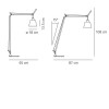 Stolní lampa, těleso hliník, včetně stínítka pergamen, nebo šedá průsvitná satinová, 1x70W, E27, 230V, IP20, dvě ramena l=800mm+550mm !! omezený sklon ramene l=800mm max15°, s vypínačem, bez základny