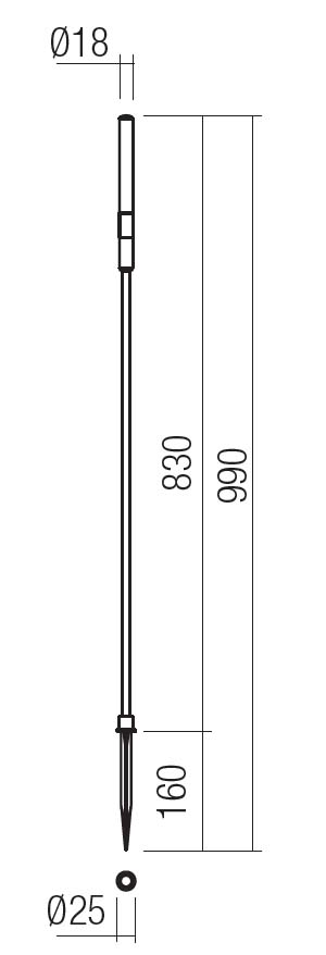 Sloupkové svítidlo, pro osvětlení záhonů s bodcem, těleso hliník, barva tmavě šedá/rezivá/tmavě zelená, difuzor plast opál, LED 1,5W, teplá 3000K, 80lm, 24V, IP65, tř.3, rozměry d=18mm, výška dle typu.