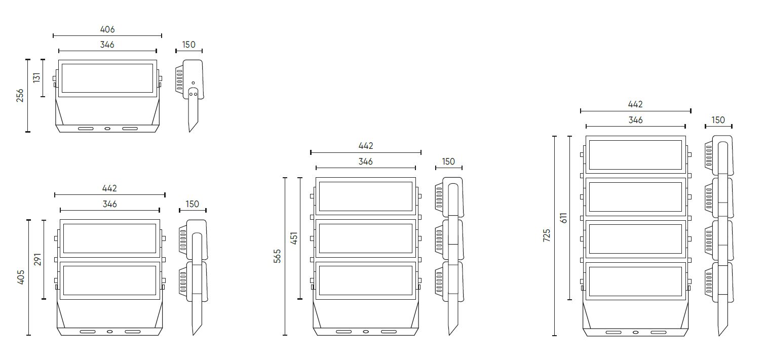 Výhodné vlastnosti Nabízí více úhlů vyzařování, což zajišťuje perfektní řešení osvětlení pro jakoukoli aplikaci. umožňuje modulární konfiguraci svítidel, což vám umožňuje volně kombinovat jednotky a dosáhnout celkového výkonu systému až 1200 W.