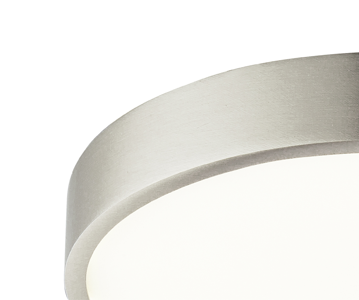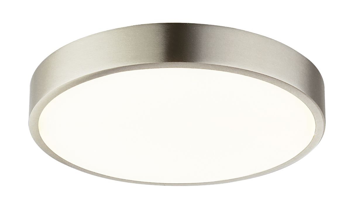 Stropní přisazené svítidlo, těleso hliník, povrch nikl mat, difuzor plast opál, LED 1x15W, 1650lm/1350lm, 22W, 2475lm/1980lm, 28W, 3300lm/23520lm, neutrální 4000K, stmív TRIAC, 230V, IP20, tř.2, rozměry dle typu