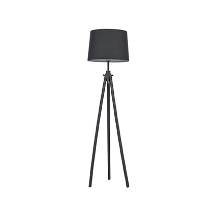 Stojací dekorativní lampa, těleso přírodní dřevo s kovovými detaily, barva přírodní/bílá/černá, stínítko PVC potaženo textilní látkou bílá/černá, pro žárovku 1x60W, E27, 230V, IP20, tř.2, rozměry d=480mm, v=1640mm