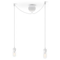 Závěs pro svítidlo, základna plast, povrch bílá nebo černá, kabel s textilním úpletem, povrch bílá nebo černá, pro úspornou žárovku 2x15W, E27, 230V, IP20, d=120mm, závěs l=2500mm, lze zkrátit, stínítko SAMOSTATNĚ