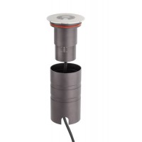 Zemní svítidlo, těleso hliník, rámeček ocel česaná, sklo čiré, LED 1,3W, 80lm, teplá 3000K, 700mA, IP67, tř.3, rozměry d=28mm, h=50mm.