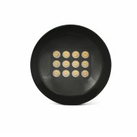 Zemní kruhové svítidlo, základna hliník povrch černá, rám nerez, krycí sklo čiré, LED 1W, neutrální 4000K/teplá 3000K, vyzař. úhel 45°, 24V, IP67, IK06, Ra80, tř.3, rozměry d=28mm, h=46mm, trafo samostatně, mont box SAMOSTATNĚ