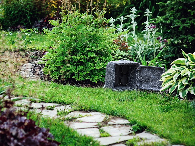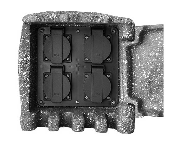 ZS 4 - Zahradní sloupek se zásuvkou 4x 230V max. 16A, 3680W, tělěso plast, povrch imitace kámen, 230V, IP44, tř.1, rozměry 190x190x185mm, přívodní kabe 1,8m, zakončeno vidlicí 230V